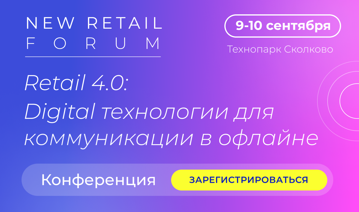 | UPGRADE | Деловые мероприятия для ритейлеров | | | Друзья, коллеги, приглашаем на конференцию Магазин 4.0, которая пройдет на New Retail Forum 9-10 сентября. | | | Вместе с экспертами рынка обсудим новые ритейл форматы и подробно разберем примеры их реализации. | | | | Основные вопросы деловой программы | | | 9 сентября:#1 Технологии, улучшающие клиентский опыт в Магазине 4.0 #2 Автоматизация бизнес-процессов в Магазине 4.0 Какие акценты расставить при широком спектре задач #3 Тиктокеры, блогеры, стримеры - создание новой аудитории для ритейла Магазина 4.0 #4 HR в Магазине 4.0. Временный персонал вместо постоянного персонала. Уберизация «синих воротничков». Как решить проблему нехватки персонала в ритейле 10 сентября: #1 Автоматизация логистика Доставка из магазина, со склада. #2 Платежи 4.0, виртуальные карты лояльности, биометрия, кассы самообслуживания #3 Магазин будущего, DIY и мебельный ритейл #4 Магазин будущего, Grocery #5 Магазин будущего, Fashion | | | | Спикеры ответят на ваши вопросы: | | | - Александр Сальников, директор по логистике М.Видео-Эльдорадо