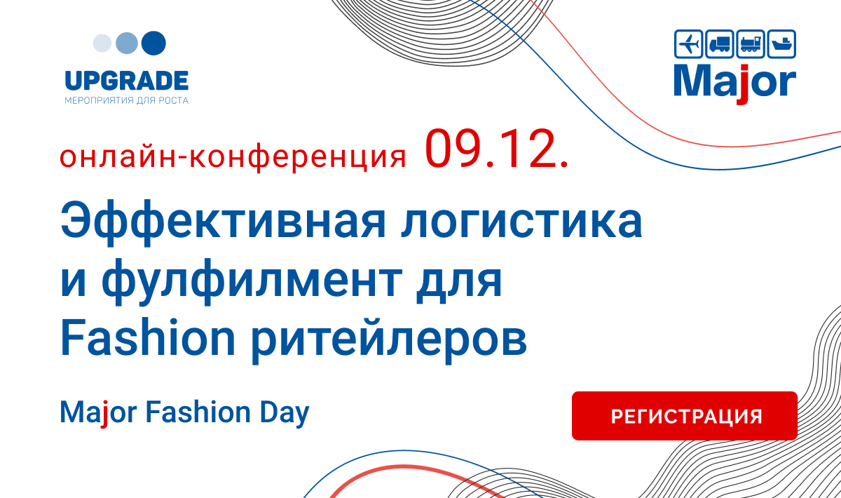 | UPGRADE | Деловые мероприятия для ритейлеров | | | Друзья, коллеги, приглашаем на online конференцию Major Fashion Day, 9 декабря, 11:00 - 13:15 | | | Подводим итоги года, обсуждаем логистические и фулфилмент-сервисы, обеспечивающие развитие омниканальных стратегий и рост онлайн-продаж в Fashion сегменте. Подробно обсудим вопросы: - новые фулилмент-сервисы для Fashion ритейлеров, специфику работы с маркетплейсами
