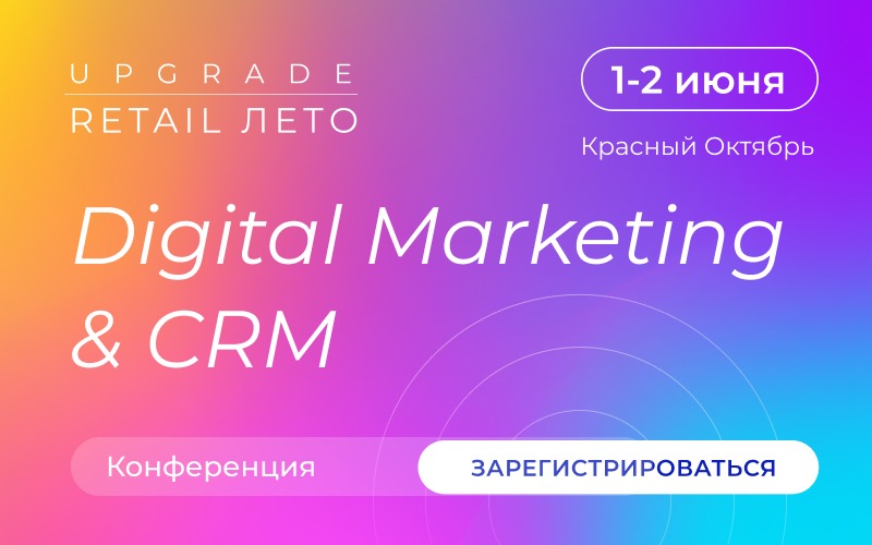 | UPGRADE | Деловые мероприятия для ритейлеров | | | Приглашаем на конференцию «Digital Marketing & CRM» в рамках форума UPGRADE RETАIL ЛЕТО! | | | Коллеги, друзья, приветствуем! 1-2 июня на UPGRADE RETAIL ЛЕТО 2022 крупнейшие интернет-магазины, маркетплейсы и ритейлеры обсудят, как трансформируются маркетинговые стратегии в новых экономических условиях, работу с клиентскими данными и CRM, развитие ритейлерами собственного рекламного и маркетингового инвентаря. С участием e-commerce экспертов, директоров по маркетингу и CMO обсудим: #1 Маркетинг в условиях инфляции и сокращения товарных предложений- Работа с собственной аудиторией и данными, внешние источники трафика, ко-маркетинг и обмен данными