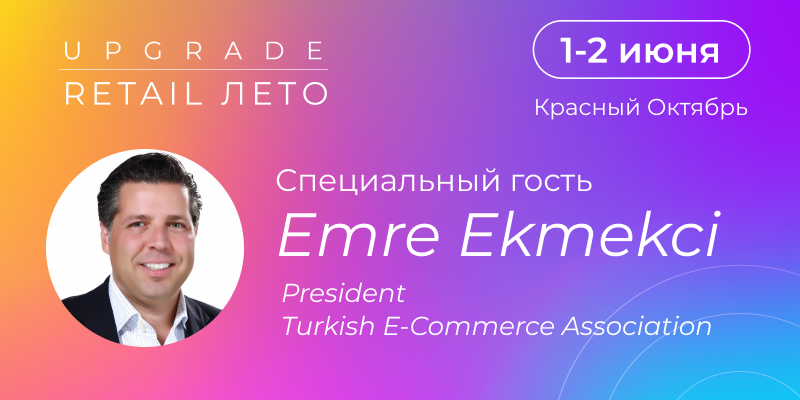 | Специальный гость UPGRADE RETAIL ЛЕТО 2022 | | | Друзья, коллеги, приветствуем! Знакомьтесь с Эмре Экмекчи, президентом E-Commerce Ассоциации Турции. С его участием разберем весьма актуальные вопросы по экспорту товаров из Турции, кроссбордеру и логистике. Мы понимаем, что многолетние партнерства с глобальными брендами и поставщиками товаров нарушены, но план действий есть, узнаем подробности у спикеров UPGRADE. Встречаемся 1-2 июня на UPGRADE RETAIL ЛЕТО 2022, чтобы обсудить: - варианты взаимовыручки и поддержки участников ритейл рынка